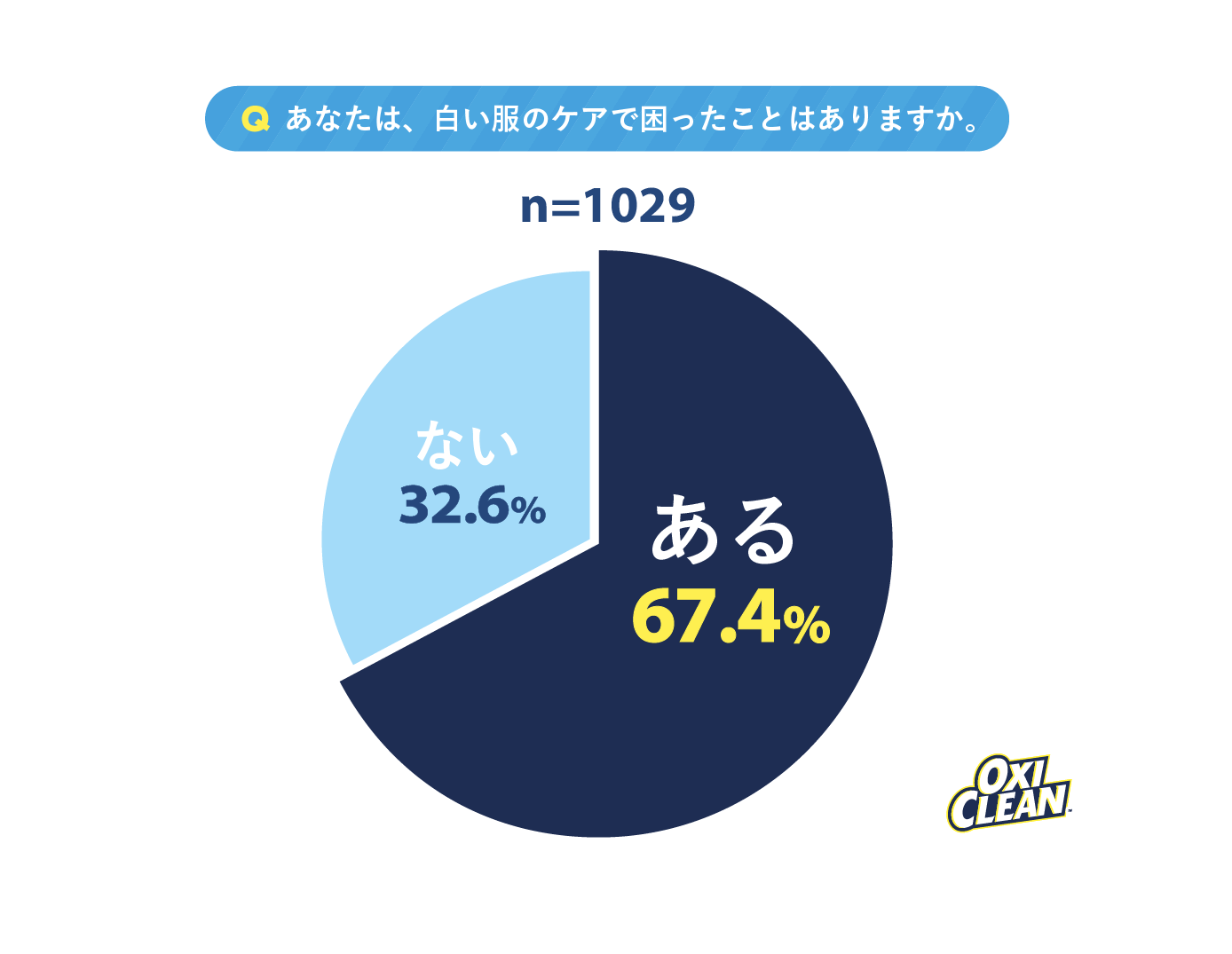 白い服のケアで困ったことはあるかたずねたところ、67.4%が「ある」と回答しました。食べこぼしや汗じみなどの汚れが目立ちやすいため、ほかの色よりも気を遣ってケアをしている方も多いかもしれません。