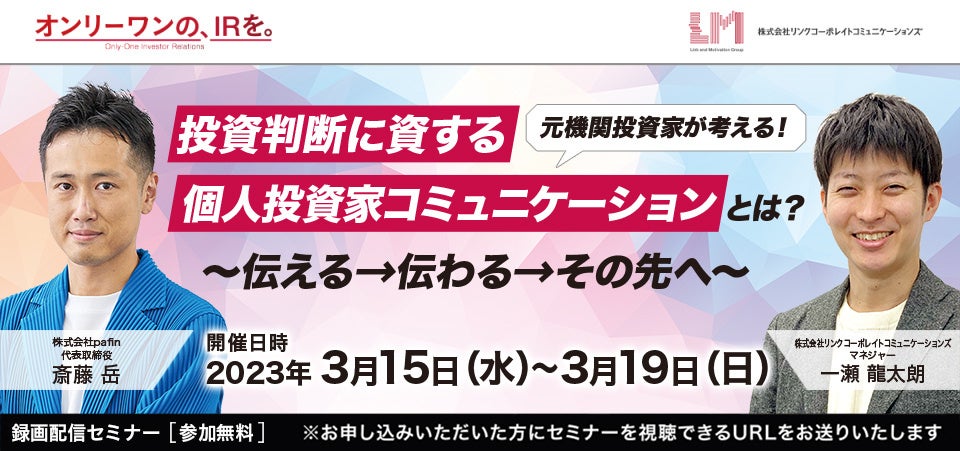 お申し込みはこちら⇒https://www.link-cc.co.jp/seminar/pr_ir_seminar_230320.html