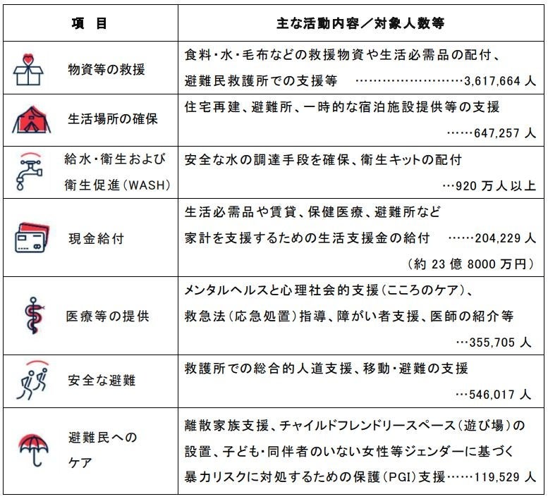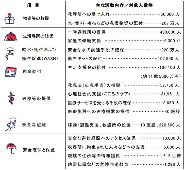 連盟とICRCに5億円ずつ送金し、各地で赤十字の中立な人道支援活動に使用されます。これまで、日本赤十字社から連盟とICRCへ送金した合計額は47億2000万円(連盟・ICRCともに23億6000万円ずつ)にのぼります。(使途詳細は、下記「赤十字の主な活動実績(2022年2月~5月)」を参照。)
