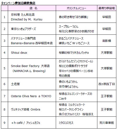 東京都交通局は、東京さくらトラム(都電荒川線)沿線地域の活性化を図るため、沿線の飲食店とコラボレーションした期間限定のキャンペーン「春の吹き寄せ旅~都電の旅2023~」を実施します。今回の企画では沿線の人気飲食店にご協力頂き、東京さくらトラム沿線に咲く桜などをモチーフとした春の季節限定のオリジナルメニューを開発してもらいました。