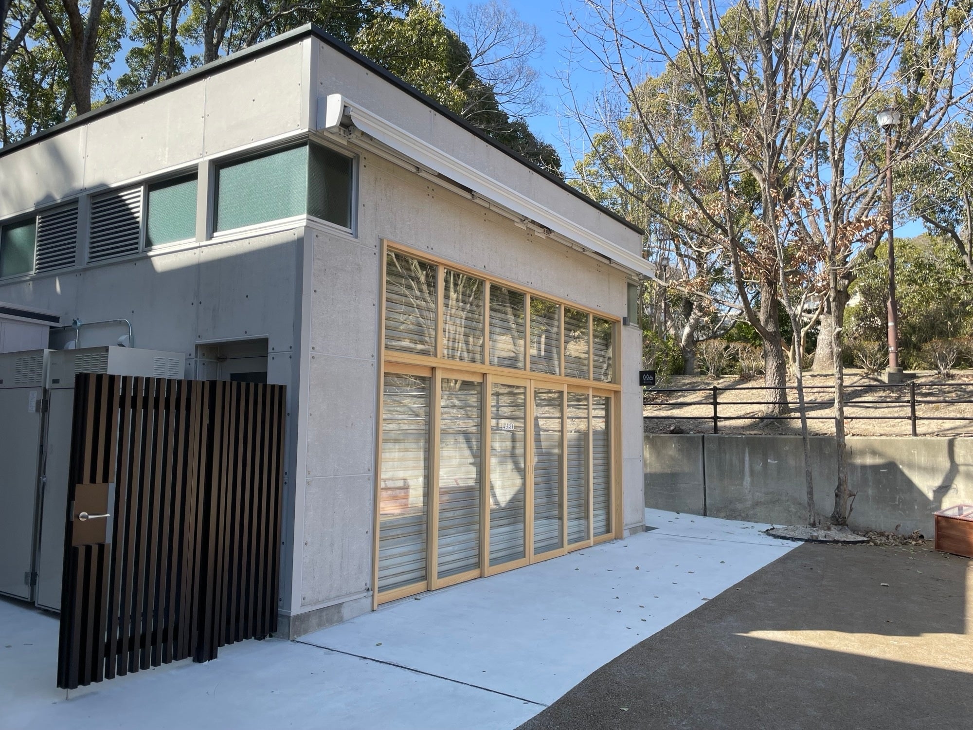 令和4年秋に実施したアートワークショップ「いろをみつけていろをつくる」の第2弾として「たてもの丸ごとぬる」を開催します。地域住民に参加してもらい、秋のアートワークショップ参加者とともにつくった千里中央公園を表現した色を重ねて、「LABO」を丸ごと塗ります(参加費無料、当日先着順による受付)。