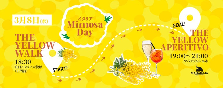 3月8日の国際女性デー、イタリアでは男性が女性に美しいミモザの花を贈り、女性の社会での活躍を祝福しています。在日イタリア商工会議所は、女性のエンパワーメントを促進するために、このイタリアの文化習慣を日本に広める活動として「Mimosa Day(ミモザ・デイ)」というイベント事業を推進しています。そのイベント事業の一環として、「The Yellow Walk&The Yellow Aperitivo」を開催しました。