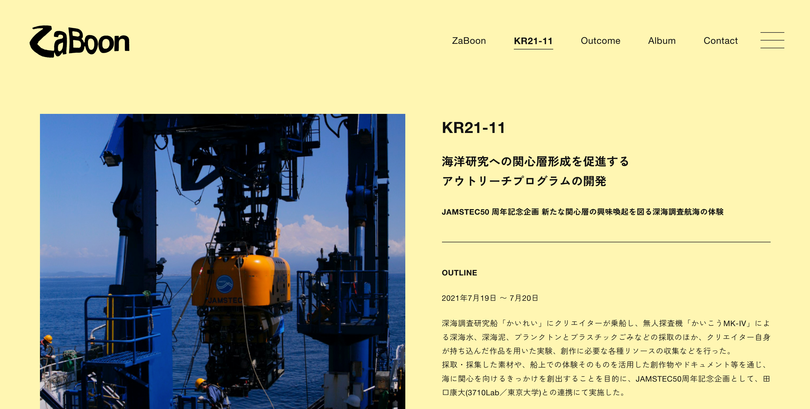 初回リリースでは、2021年度に行われたJAMSTEC(国立研究開発法人海洋研究開発機構)の50周年記念企画として、3710Labが共同企画、実施をした「『KR21-11』海洋研究への関心層形成を促進するアウトリーチプログラムの開発」を起点に、体験者が創出した複数のアウトカムを紹介しています。