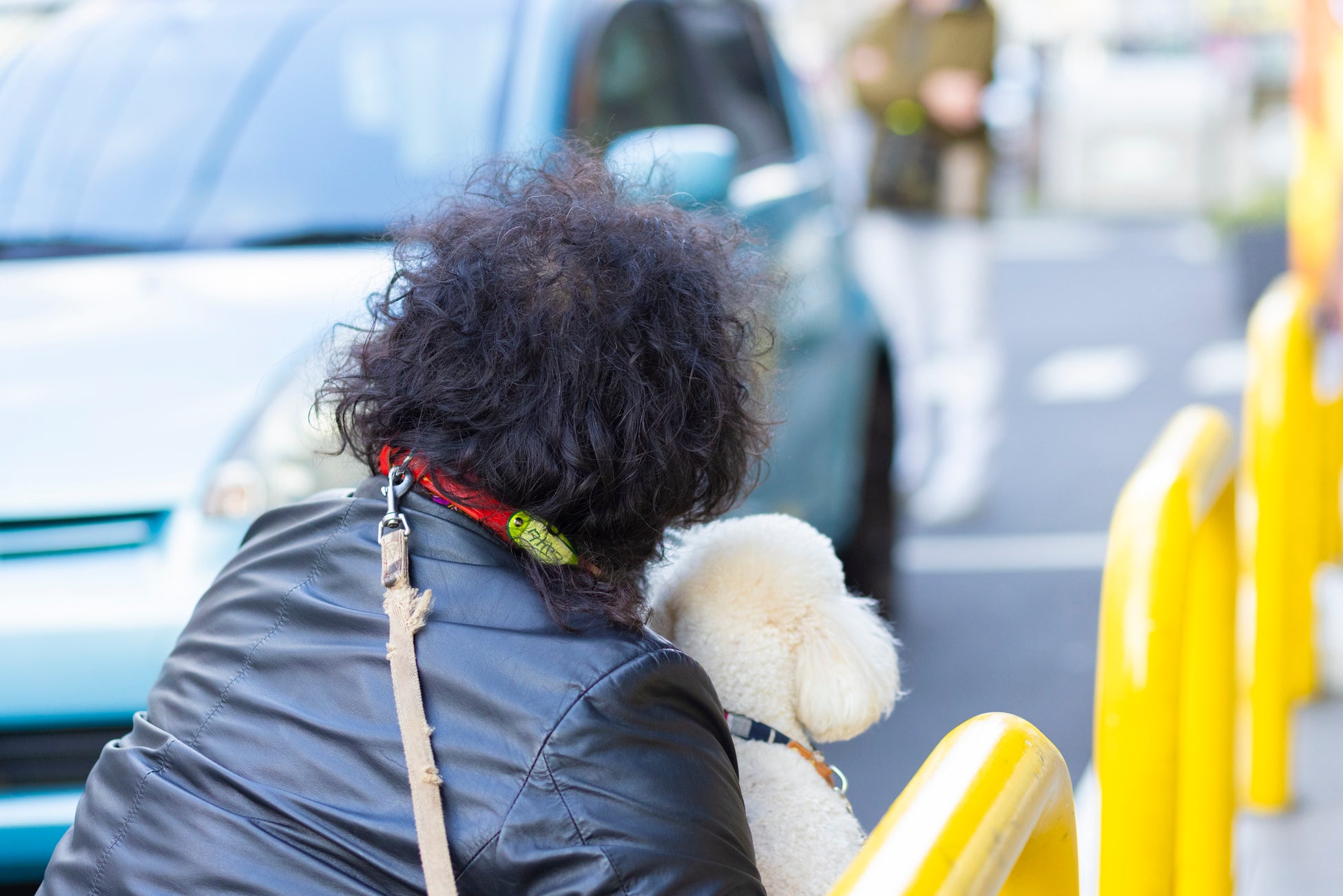 【後頭部】コンビニ前で飼い主を待つ高山と愛犬ジャッキー