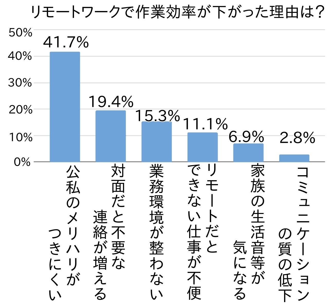 アンケートでは次に、リモートワークによって業務効率が下がったと感じた方を対象に、その理由を尋ねました。