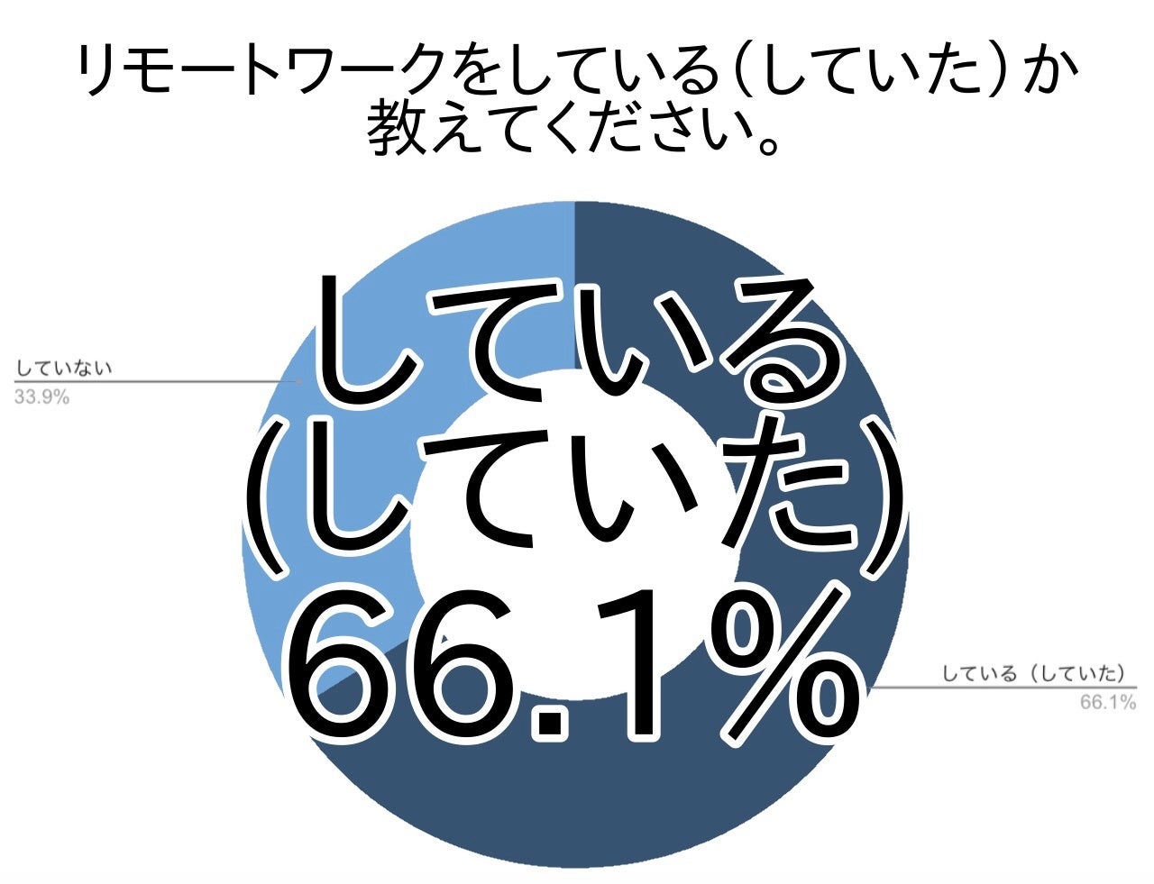 今回のアンケートでは大阪府にお勤めの方でリモートワークを実施している(していた)と答えた方は66.1%という結果になりました。