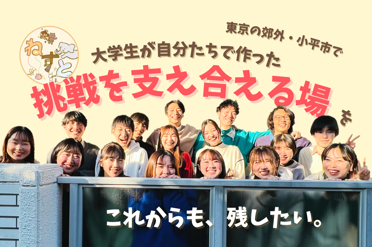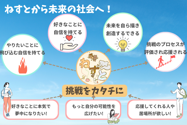 また、ねすとは、学生の挑戦を応援することを通して、誰もが、自分のやりたいことや、好きなことに真剣に取り組み、挑戦することができる社会を目指しています。そして、大学生のエネルギーや行動力から、あらゆる世代の人々とつながり、この挑戦の輪をさらに広げていきたい!と強く思っています。