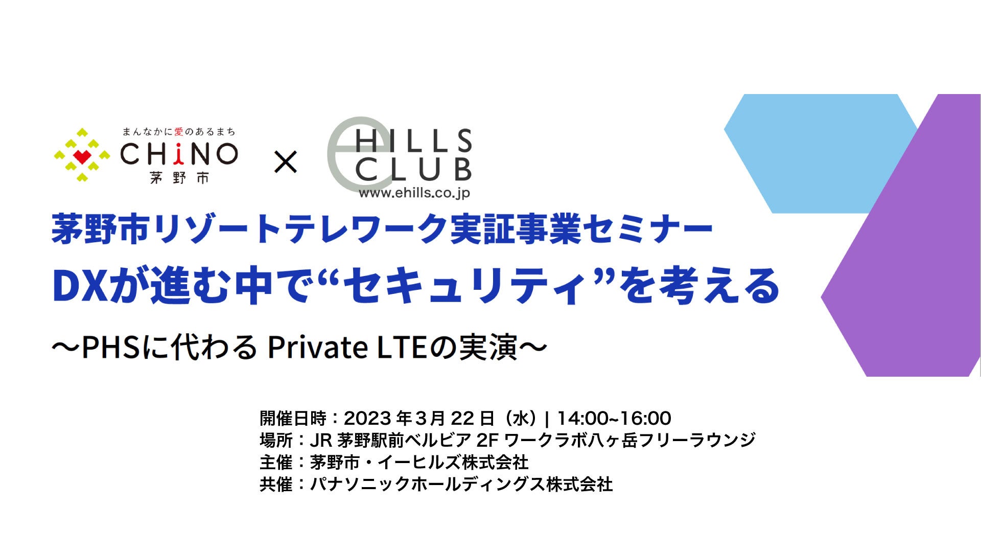 主催:茅野市・イーヒルズ株式会社 共催:パナソニックホールディングス株式会社