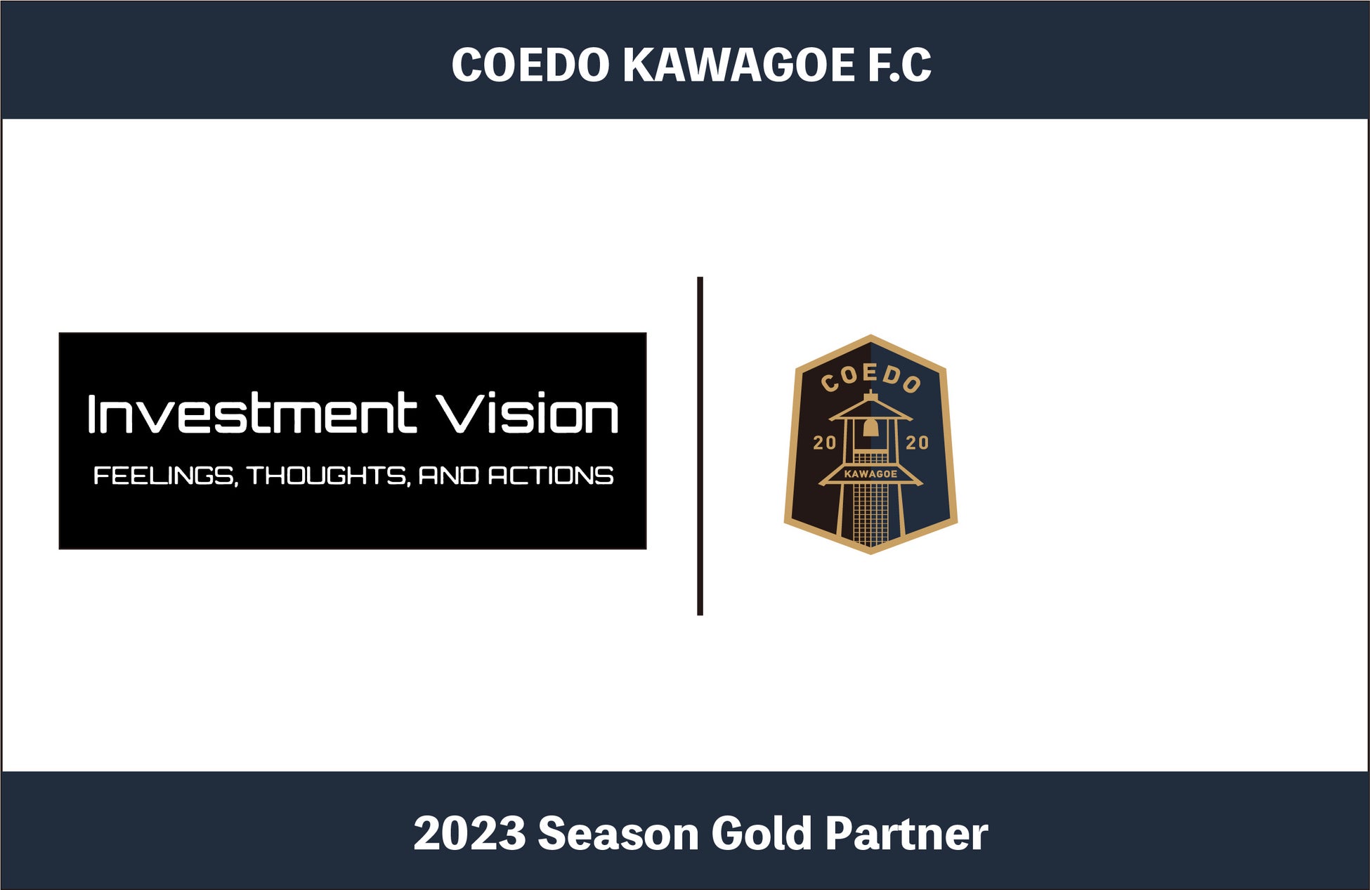 COEDO KAWAGOE F.Cを運営するCOEDO KAWAGOE F.C株式会社(埼玉県川越市、代表取締役 有田和生)は、経営×ITコンサルティング、システム開発、投資運用事業を展開するインベストメント・ビジョン合同会社(埼玉県入間郡越生町、代表社員 島田三義)と2023シーズンのゴールドパートナー契約を締結したことを発表いたします。
