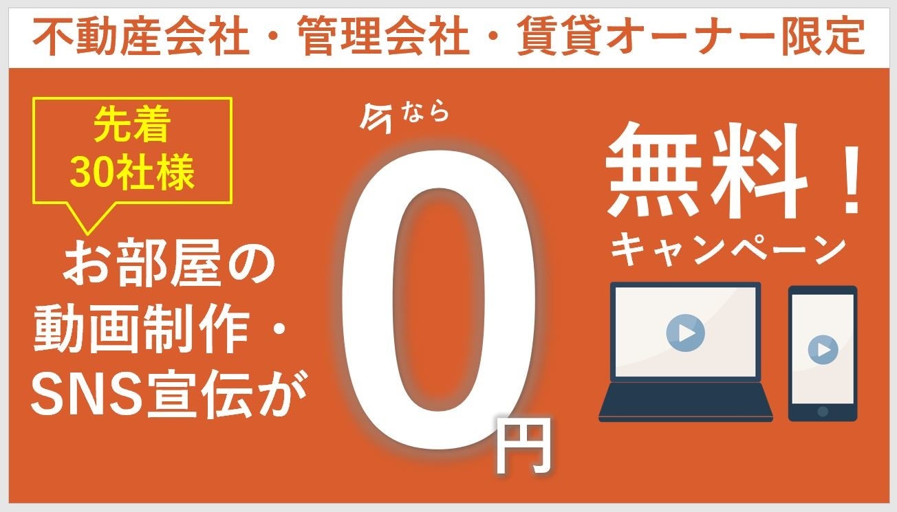 賃貸住宅の入居者募集で新たなチャネルを探している方や、お部屋紹介をする際に動画を活用したい事業者の方・賃貸オーナーの方におすすめのキャンペーン開始! お気軽にご相談、お申し込み(https://forms.gle/8o6V4oWSKPJEQUwx7)ください。
