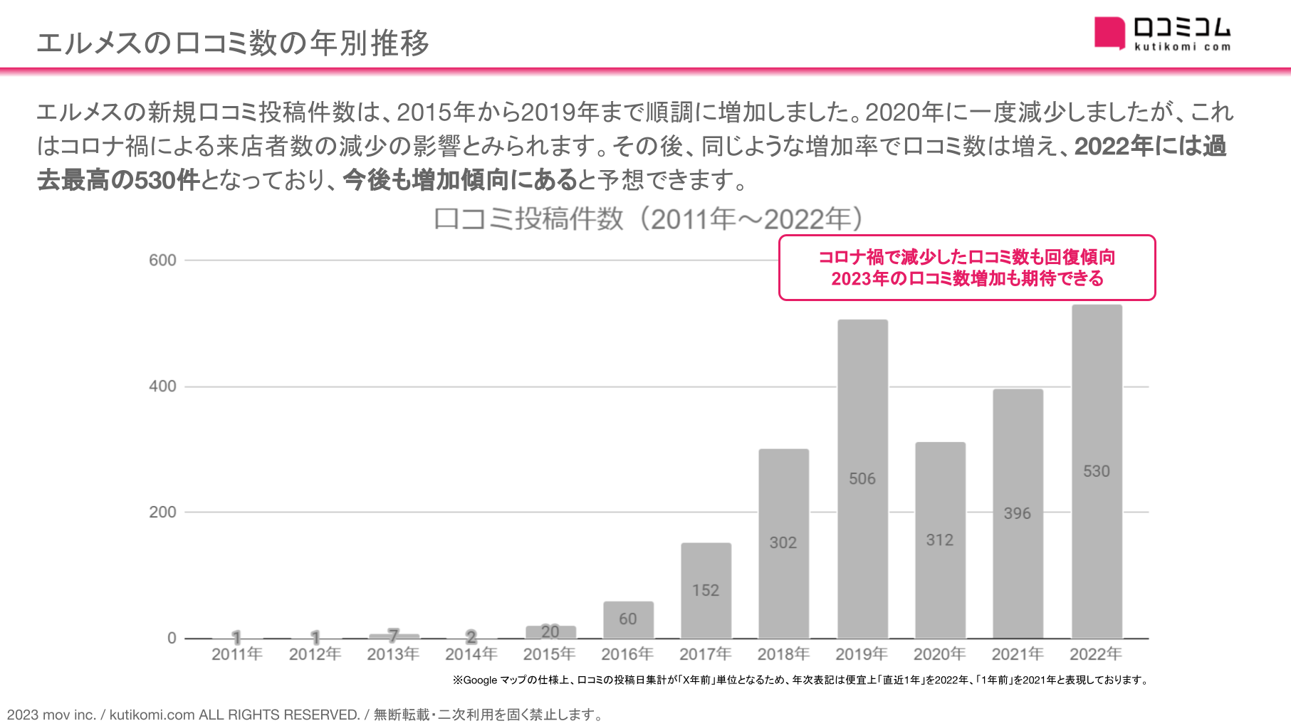 ■ エルメスの口コミ数の年別推移