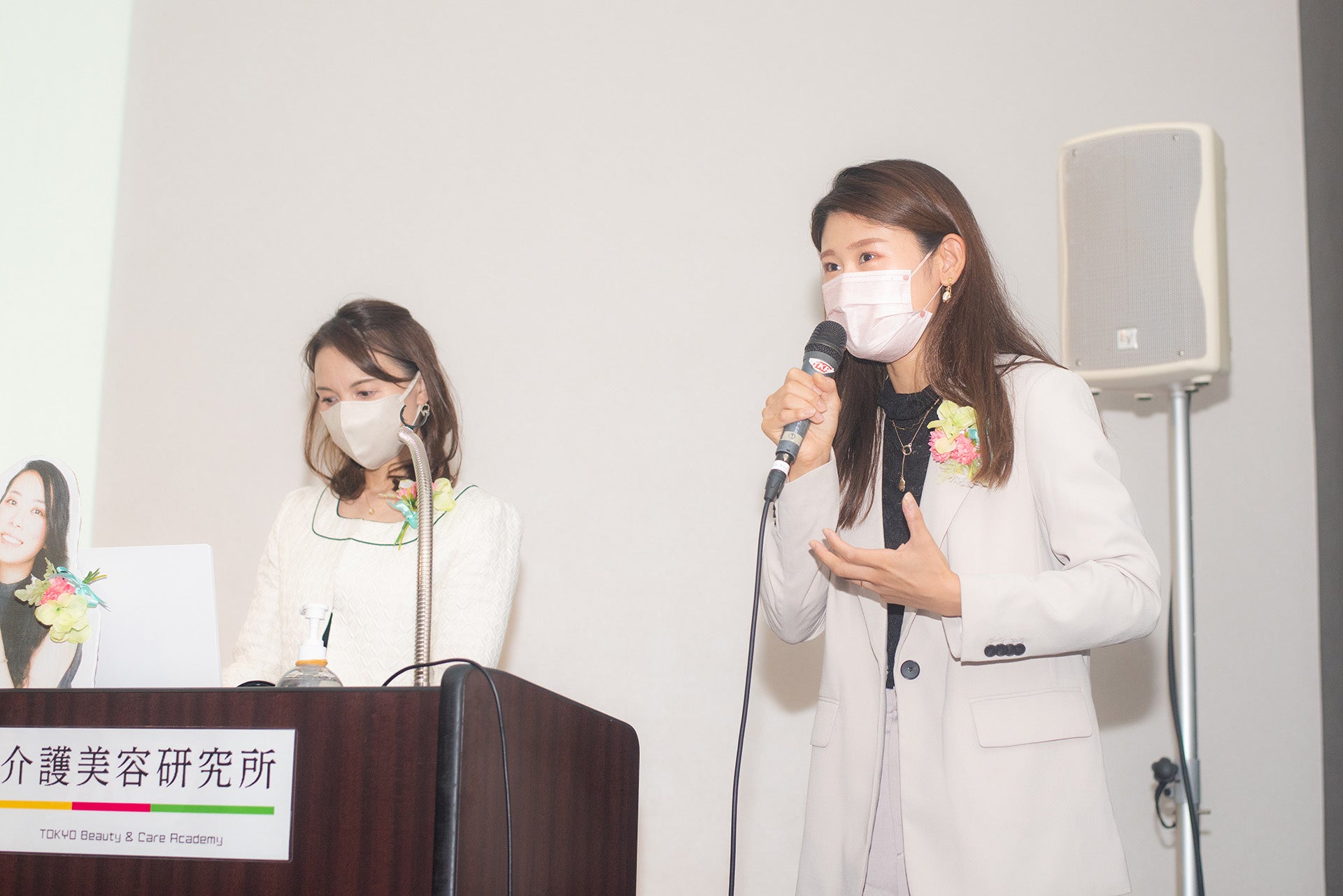 「高齢者に美容サービスを届ける」事をスクールならびに社内一丸となり取り組んでおります。2022年4月に開校した福岡校の受講生も1年制の皆さんが卒業する時期となり、今回の修了式を境に過去最も多くのケアビューティストが社会に羽ばたきます。私たちは、高齢者に美容サービスを届ける技術者の育成だけではなく、心身の健康を保ち、高齢者の生活や行動意欲を引き出すための施術を開発・提供しています。今後とも、年齢や性別に関係なく美容サービスを受けていただける社会作りを目標に活動を行ってまいります。