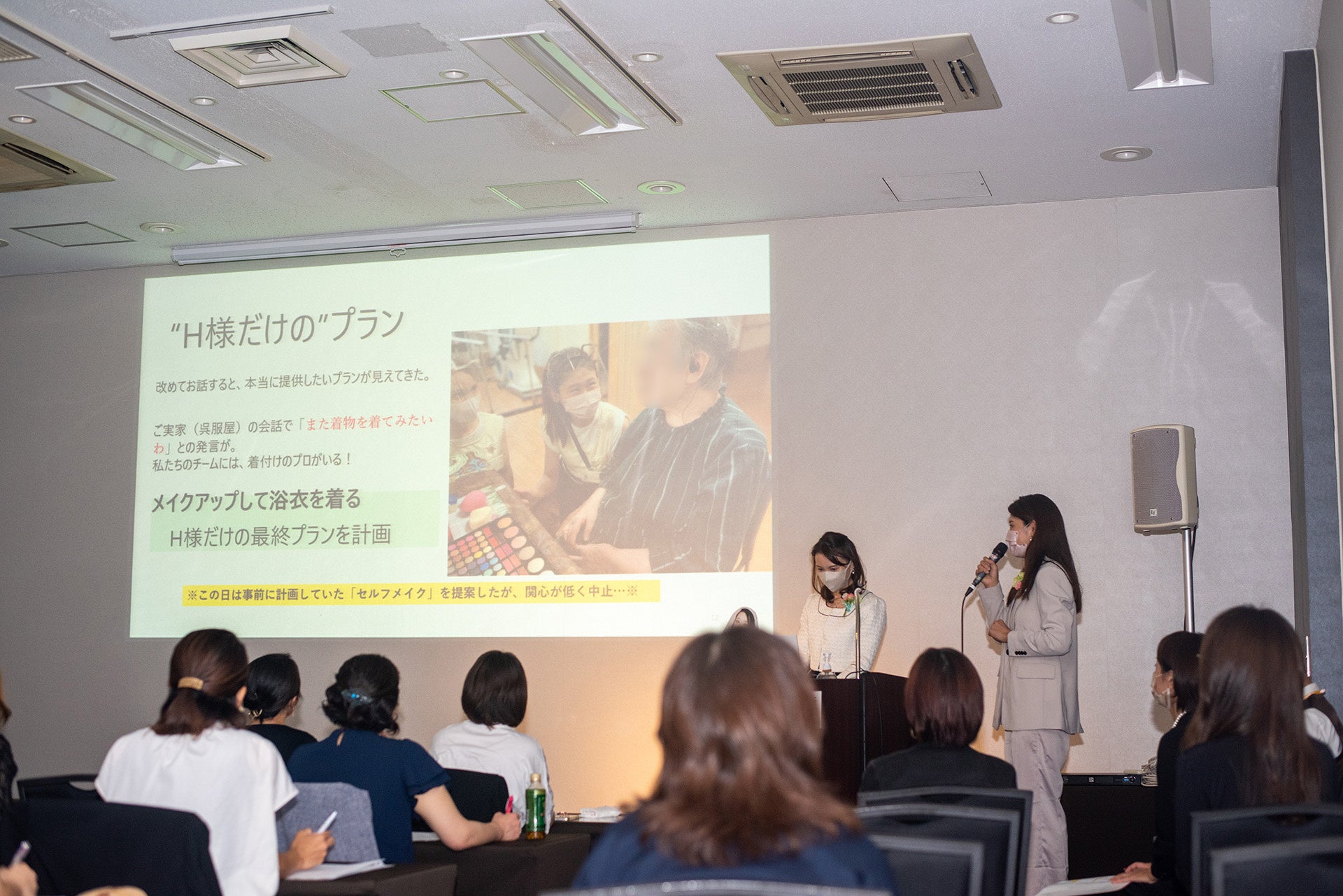 本プロジェクトは、利用者様の「高齢や障がいを理由にせず、いつまでも自分らしくありたい。」という思いを受け止め、美容サービスを提供するだけではなく、ケアビューティストとして必要なスキルを身につける事を目的に行っております。