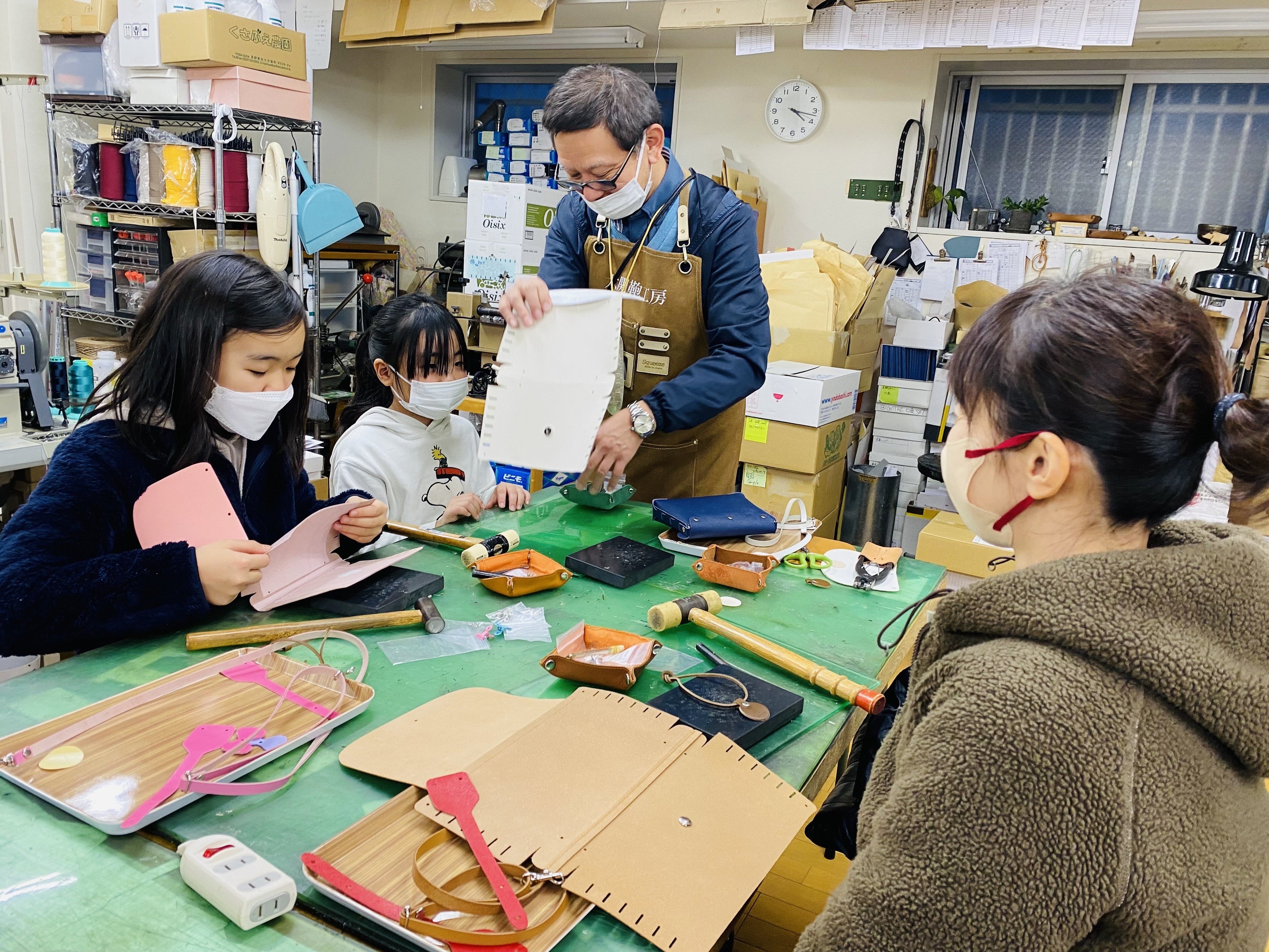 職人の道具を使って世界に一つだけの鞄づくりが体験できるワークショップを10年にわたり実施。ものを長く大切に使う心も育んでいる。