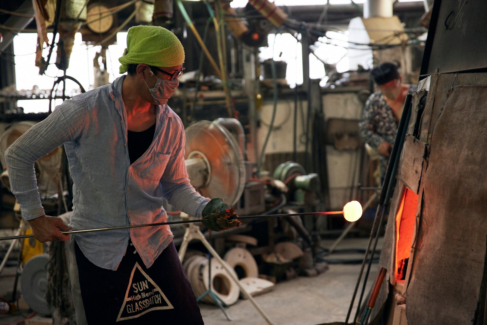 地場産業のガラス製造を自社所有溶融窯で伝統技術とともに守り