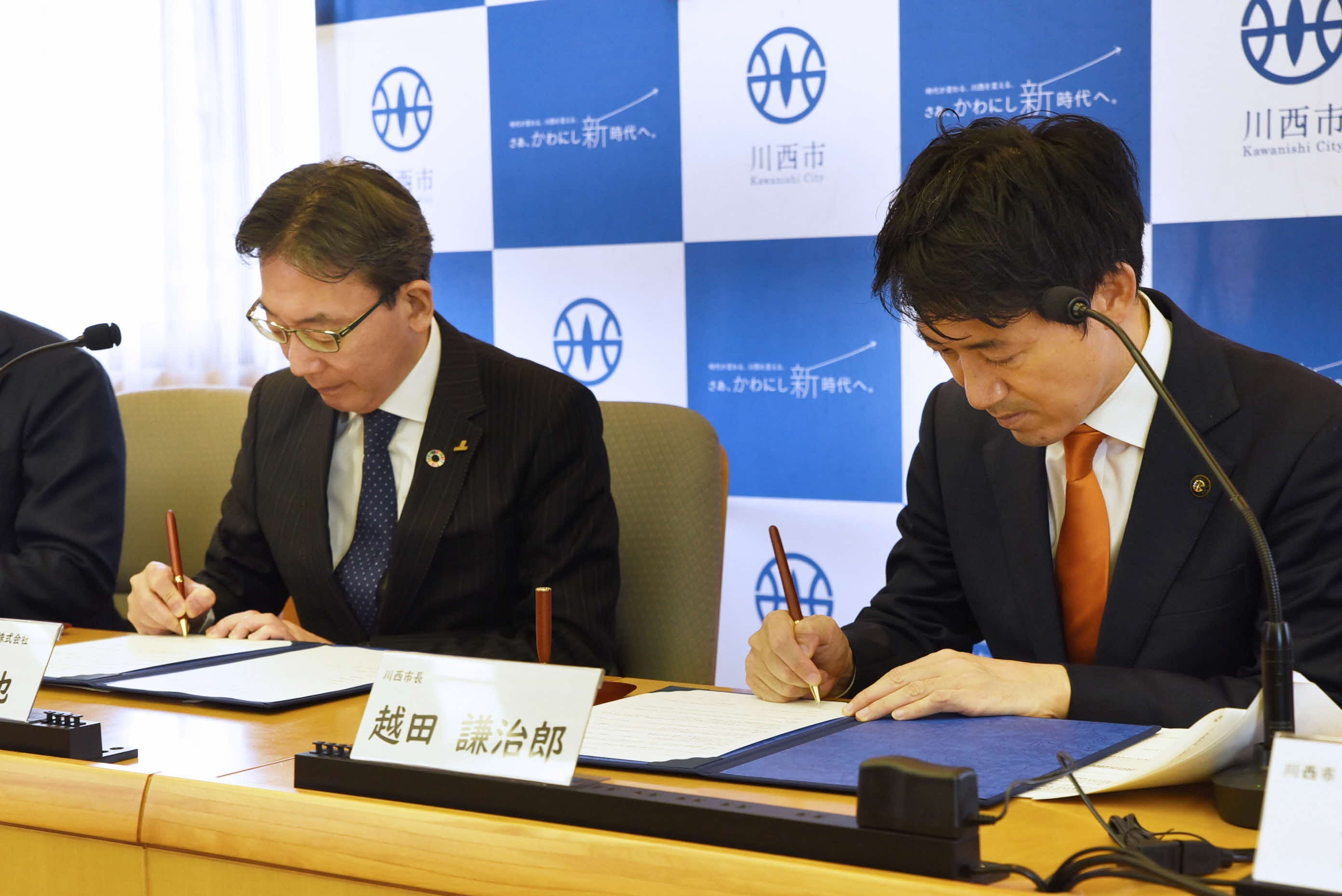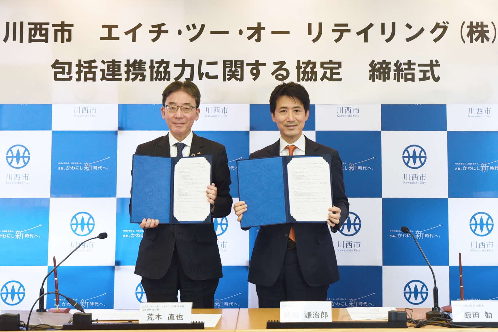 越田謙治郎川西市長は「社会課題の解決は行政だけではできないため、エイチ・ツー・オー リテイリング株式会社様のお力をお借りし、協力して課題を解決していきたい」などと話していた。