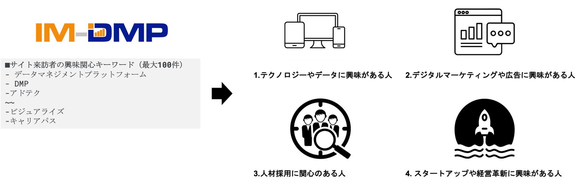 「世の中のさまざまな領域における、データを使った効率化」をミッションに掲げ、国内DMP市場導入シェアNo.1(※1)のデータ活用プラットフォーム「IM-DMP」を保有するデータマーケティングカンパニー。約4.7億のオーディエンスデータ(※2)と高度な分析技術を掛け合わせたデータ活用プラットフォーム「IM-DMP」の提供・構築支援、データ活用に関するコンサルティングサービスを提供しています。また、プライバシー保護に関する取り組みとして、一般社団法人 日本経済団体連合会が掲げる「個人データ適正利用経営宣言」に賛同しています。今後はSales TechやFin Tech、Privacy TechなどのX-Tech領域に事業を展開し「データビジネスのプロデューサー集団」を目指します。