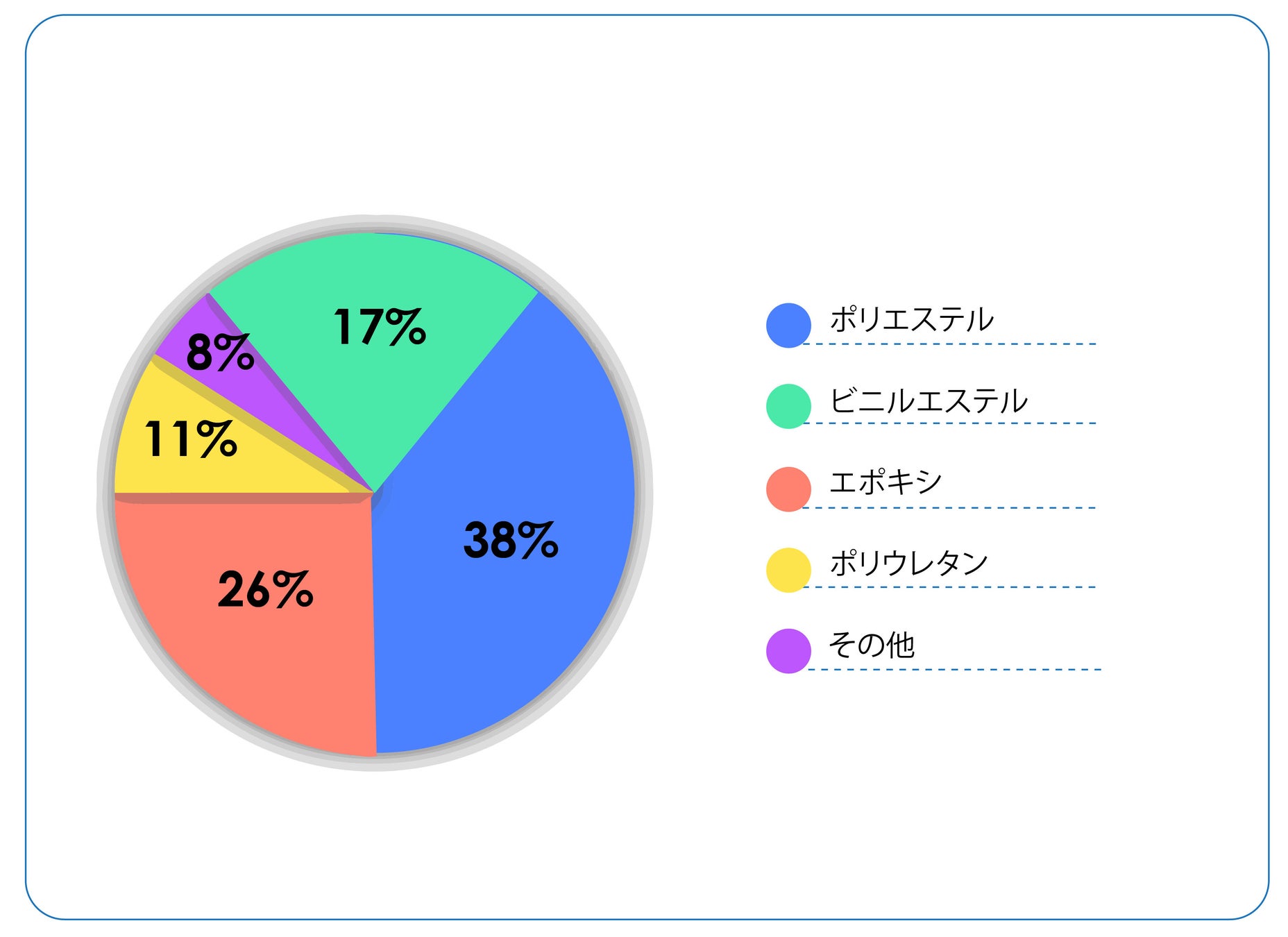 ポリエステル樹脂は、2021年に市場のほぼ40%の最大シェアを占めています。ポリエステル樹脂の低コストと耐紫外線性は、さまざまな産業分野での需要を大きく推進しています。