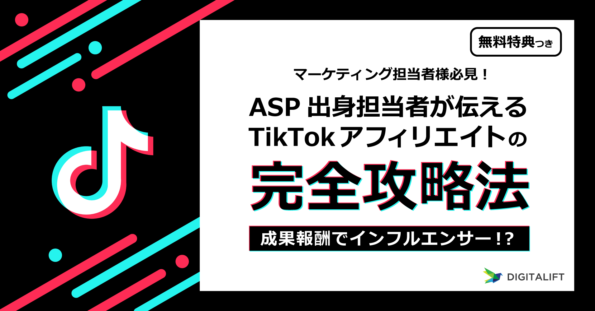そこで今回はTikTokアフィリエイトに挑戦したいご担当者様へ向け、全体の概要から成功の秘訣までを詳しくご紹介した、TikTokアフィリエイトの完全攻略法を無料公開いたしました。