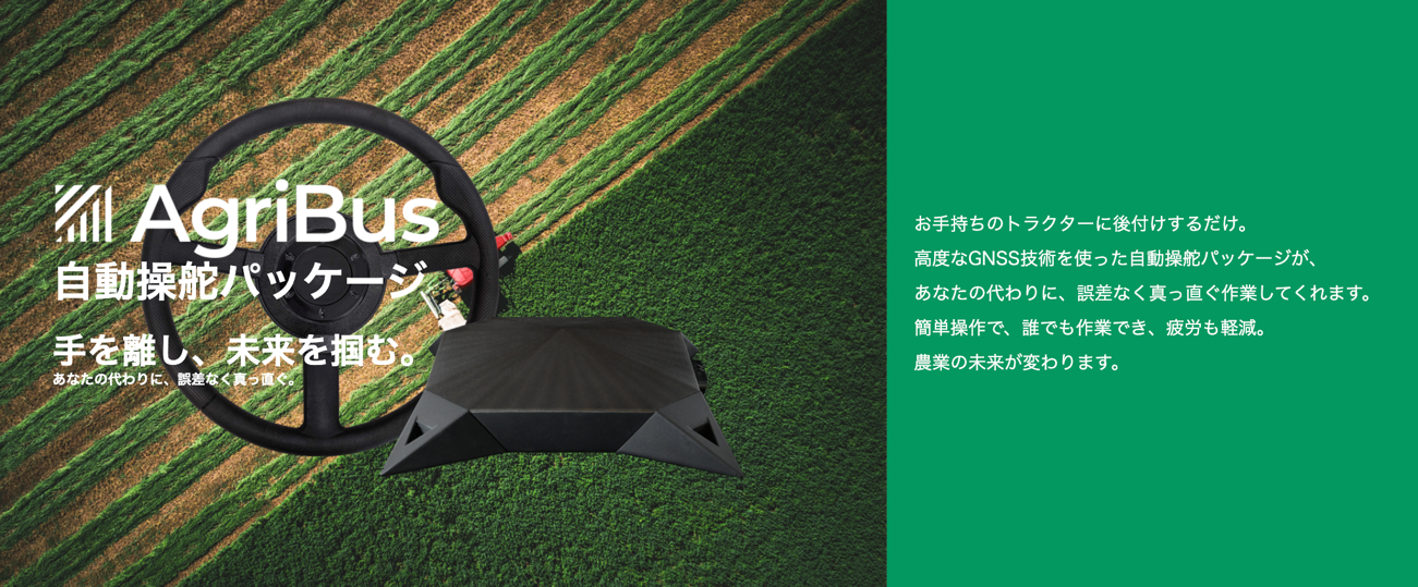 2019年12月には高精度な位置情報を可能にする「AgriBus-GMiniR」や自動操舵を実現する「AgriBus-AutoSteer」 の国内販売を開始し、農家のアグリテック化に貢献しています。