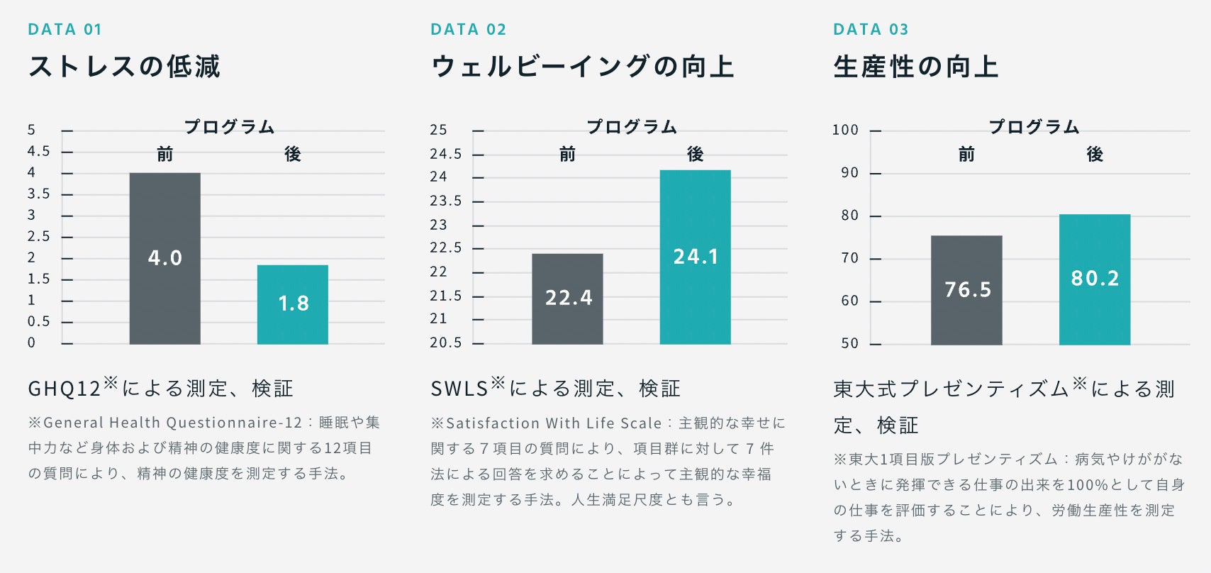 (法人概要)科学的な検証を踏まえた就労者の心身の健康(ウェルビーイングやメンタルヘルス)と人材の能力やリーダーシップの両立を図るプログラムを企業、NPO、自治体などに提供