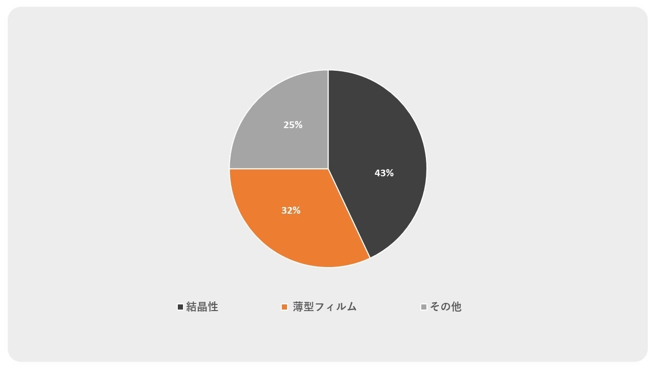 タイプに基づいて、薄型太陽電池に分割され、さらに CdTe、a-Si、CI(G)S に分割されます。 結晶型太陽電池は、さらにマルチSi、モノSiに分割されます。