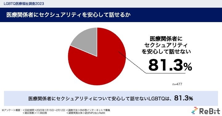 医療関係者にセクシュアリティについて安心して話せないLGBTQは81.3%であり、適切な治療を受けるために必要であっても、情報共有が困難な状況であると考えられます。