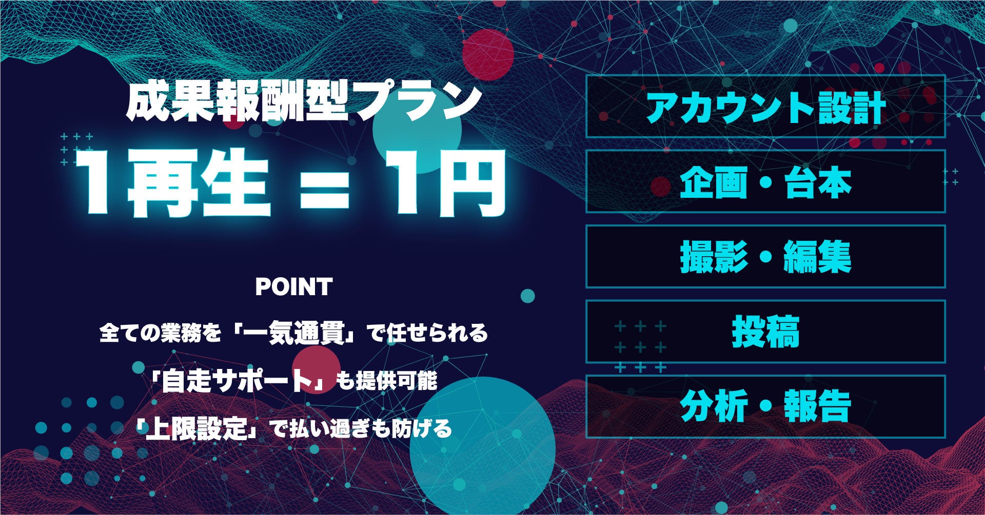 お客様のサービス・商品に合わせた企画立案・クリエイティブ制作(撮影・編集)・アカウント運用・レポーティングまで一気通貫して行います。