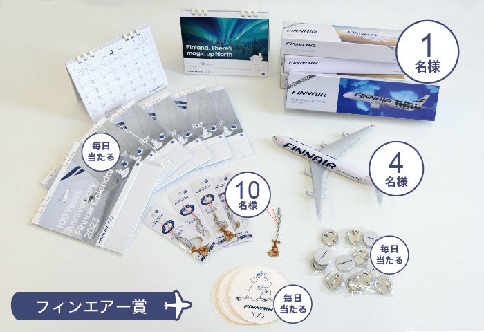 フィンエアーは、「北欧のベストエアライン」に12回連続で選出され、世界で最も長い歴史のある航空会社の一社です。今年2023年に創立から100周年、日本就航40周年を迎えます。フィンエア―のメモリアルな年の幕開けと、春をむかえるメッツァビレッジ、それぞれの新しいはじまりを記念して、気軽に北欧各国の就航都市を旅するように巡れるスタンプラリークイズをご用意しました。どなたでも北欧の国々に親しんでいただけるよう参加費は無料。クリアすると抽選にチャレンジでき、ハズレなし。総額100万円超の各豪華景品が毎日当たります。