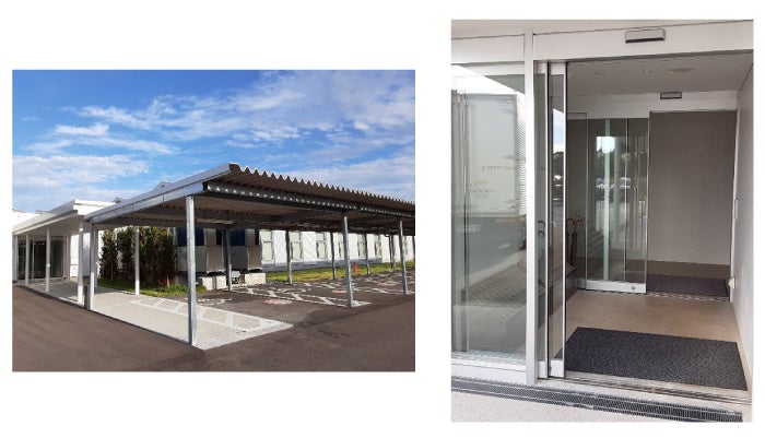 高齢者や障がい者、妊娠中の方等も利用しやすいよう天候に左右されずに乗降できるカーポートを設け、車イスの方でも入退館しやすい段差のない全開口の自動ドアを設置しています。