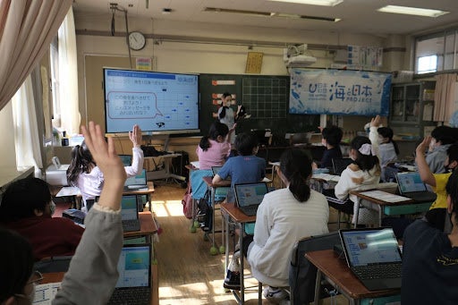 渋谷区立広尾小学校の4年生25名を対象に、一人一台端末を使用して「Scratchで海の生き物を救え!」を実施しました。今回は、社会課題のひとつ、「海洋プラスチックごみ」について学習します。人間の生活にはとても身近で便利なプラスチックですが、捨てられて海に流出したプラスチックごみは、海の生態系に大きな影響を及ぼしてしまいます。この授業では、海のSDGsと一緒に、プログラミングを楽しく学習していきます。