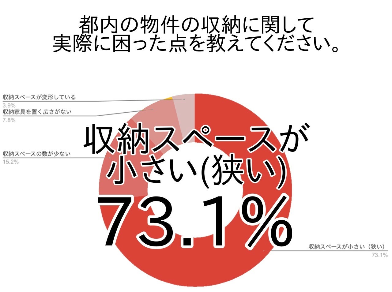 アンケートでは次に、都内の物件で実際に生活してみて収納に関する悩みがあったかを尋ねてみました。