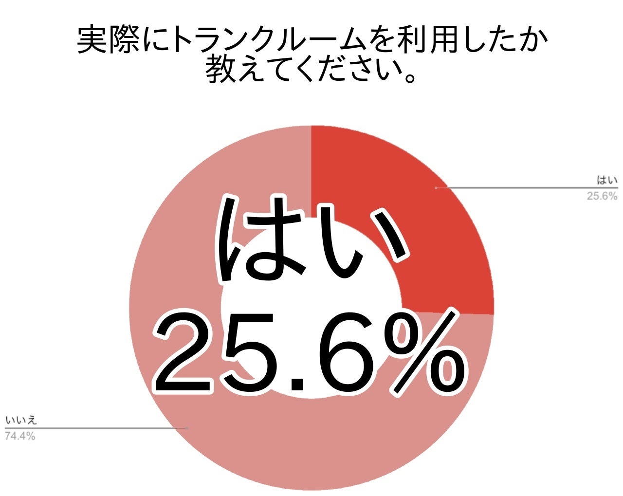 アンケートでは、25.6%の方がトランクルームを実際に利用したと答えました。利用を考えた方のうち約4人に1人が実際に利用したことになります。