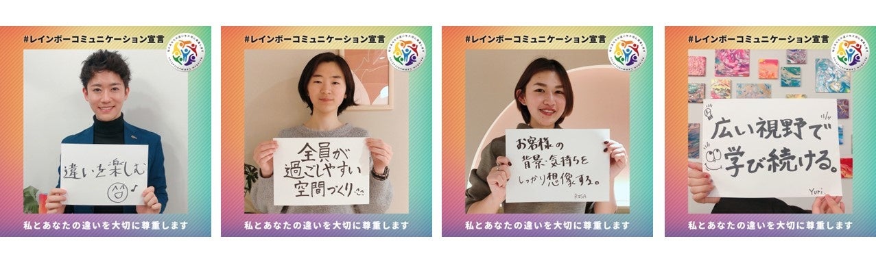 そこで、実際にレインボーコミュニケーションバッジを着用した方から、お互いの違いを尊重して行動していきたいことや発信したいことを「#レインボーコミュニケーション宣言」として募集し、後日、特設ページにて掲載をいたします。