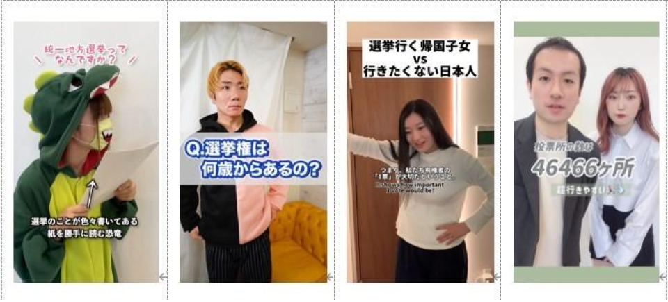 選挙ドットコムの運営会社であるイチニ株式会社は、選挙・政治に対する有権者の関心が低いことを受け、TikTok等を活用した様々な啓発活動を行っております。