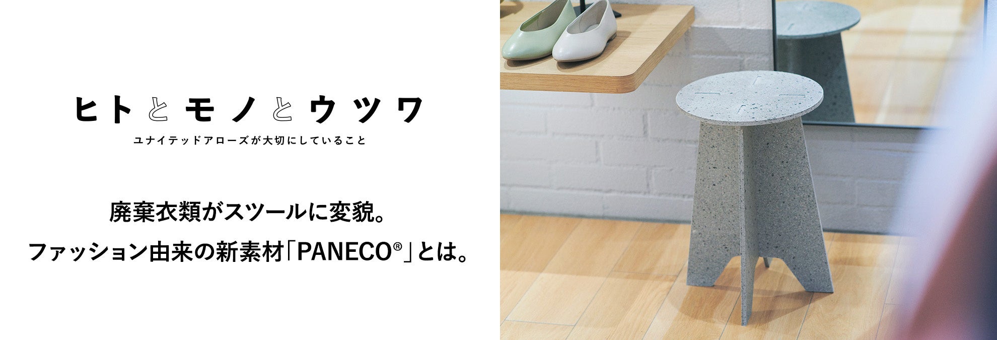 株式会社ユナイテッドアローズ(代表取締役 社長執行役員 CEO: 松崎 善則、本社所在地:東京都渋谷区)は、サステナビリティ活動「SARROWS(サローズ)」(※)の取り組みとして、廃棄衣類繊維由来の新素材「PANECO®(パネコ)」を活用した、「スツール(什器)」を製作し、ユナイテッドアローズ グリーンレーベル リラクシング(以下、GLR)の16店舗に設置します。今後も什器をはじめとした店舗空間における、「Circularity 循環するファッション」を目指した取り組みを推進します。