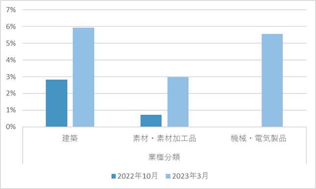 今回の分析データによると、2022年10月の300社突破時に全回答業種の中で合計4%であった建築・製造業(素材・素材加工および機械・電気製品)からの回答が、合計15%に増加しており、建築・製造業界におけるESG/SDGsに対する意識の高まりを見て取る事が出来ます。