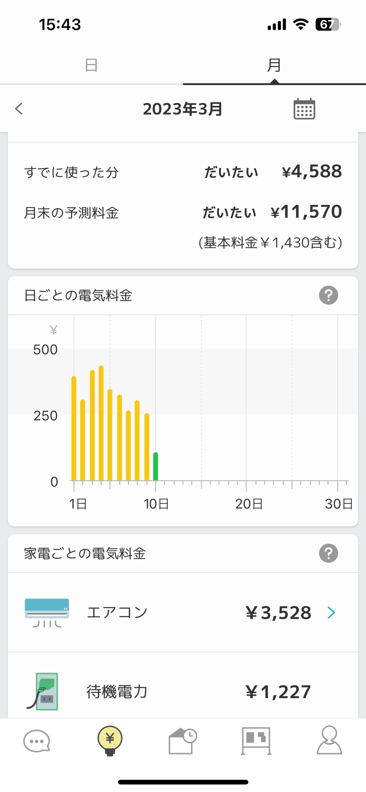 - 家電ごとの電気代がグラフで一目瞭然