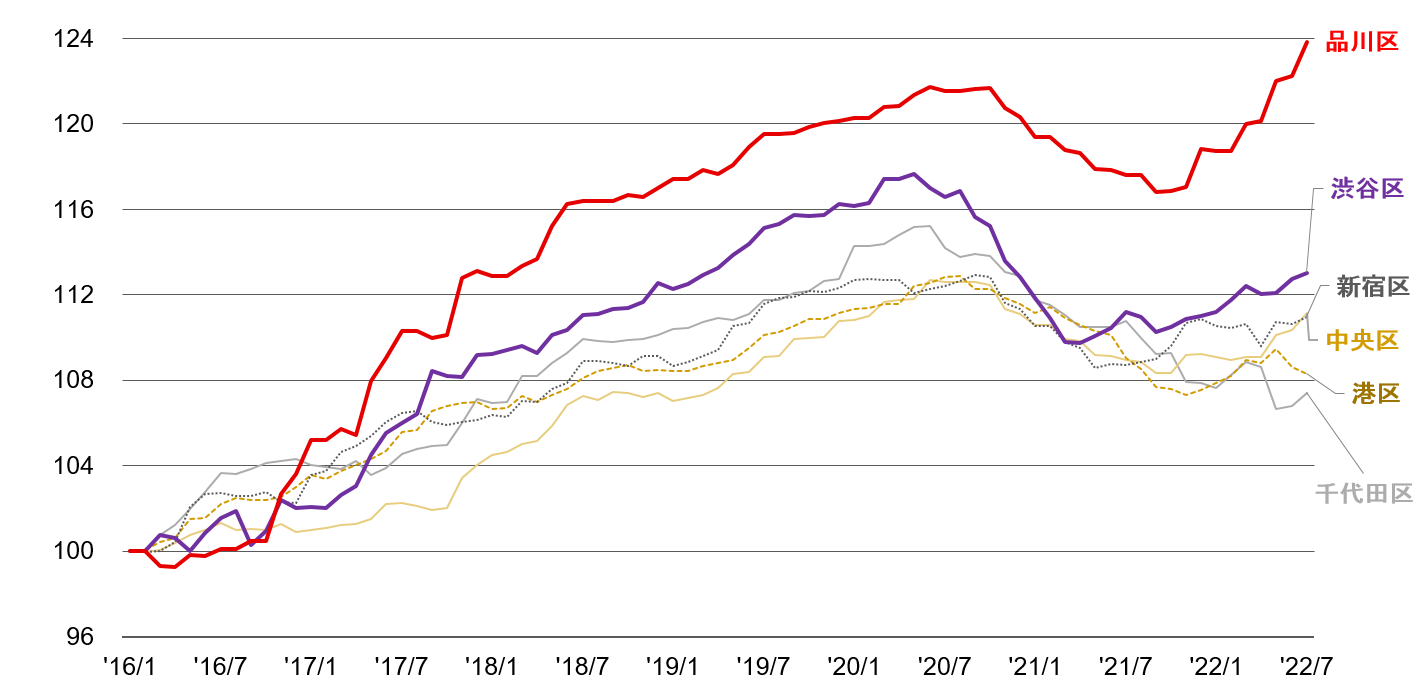 - 品川区の収益性の伸びは賃料負担力を持つ企業の増加が一因か