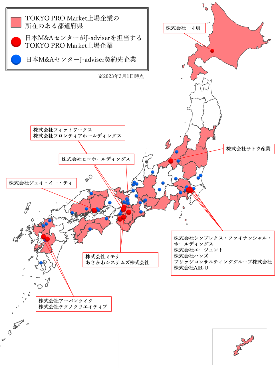 TOKYO PRO Market上場企業および日本M&AセンターJ-adviser契約先企業の状況