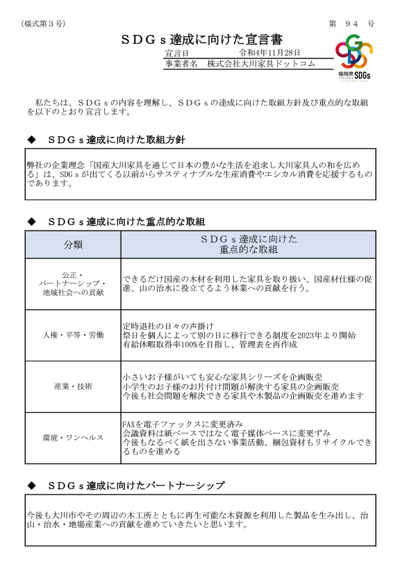 福岡県SDGs登録制度第94号の弊社では、サスティナブルな生産消費を目指し、家具製造過程で出てくる端材を有効利用しました。