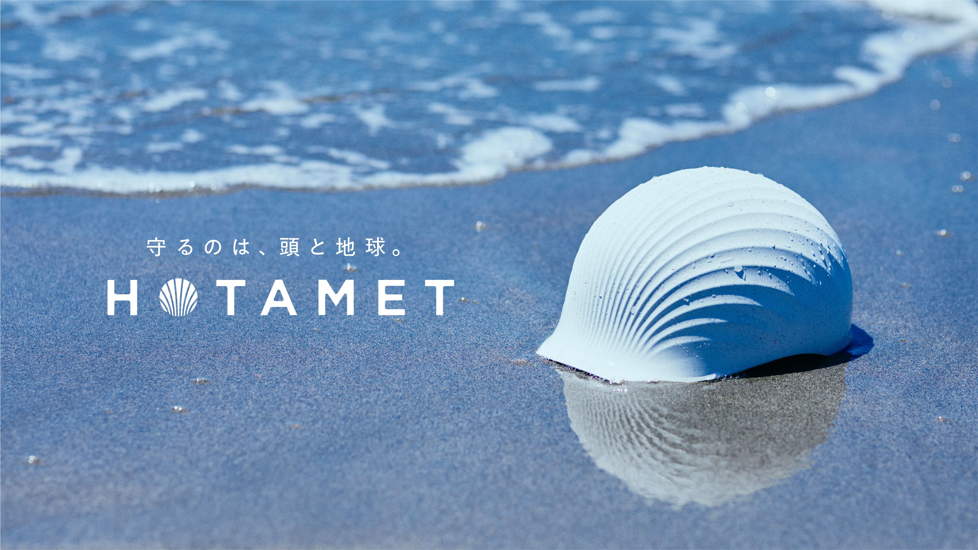 「HOTAMET」は、廃棄されたホタテの貝殻を再生使用して作られたヘルメットです。ホタテの貝殻を新素材として再利用した「カラスチック®︎」という地球に優しいエコプラスチックを使用し、新品のプラスチックを100%使ってつくるものと比較し、最大約36%の二酸化炭素削減に寄与しています。