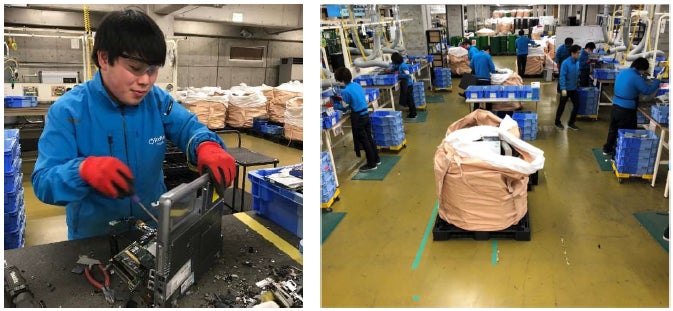 回収した使用済みパソコンは、セキュリティが確保されたリネットジャパンの専用施設に運ばれ、1台ずつ手作業で解体し再資源化処理を行います。この手作業の工程において、リネットジャパンは知的障がいのある方を一般就労で雇用し、集中力が高いという特性を活かして、知的障がいのある方が活躍できる職場づくりを推進しています。回収するパソコンが増加すれば、「リサイクルの促進」と「知的障がいのある方の雇用を創造」できるモデルとなります。
