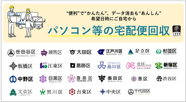 東京都は1住宅当たりの面積が狭いこともあり、不用となった使用済パソコン・小型家電を自宅に置いておくスペースも少ないため、最短翌日・希望日時にご自宅から回収する便利な宅配便回収により 、東京都民のみなさまに利便性を提供して参ります。