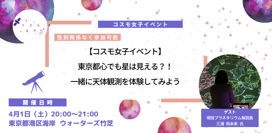 「コスモ女子」は、「宇宙を身近に」をテーマとした女性コミュニティです。バーチャル宇宙旅行など数々の部活動を発足、推進中。活動は、NHKワールド「TOKYO EYE 2020」にて特集され、約160の国と地域で放送されました。