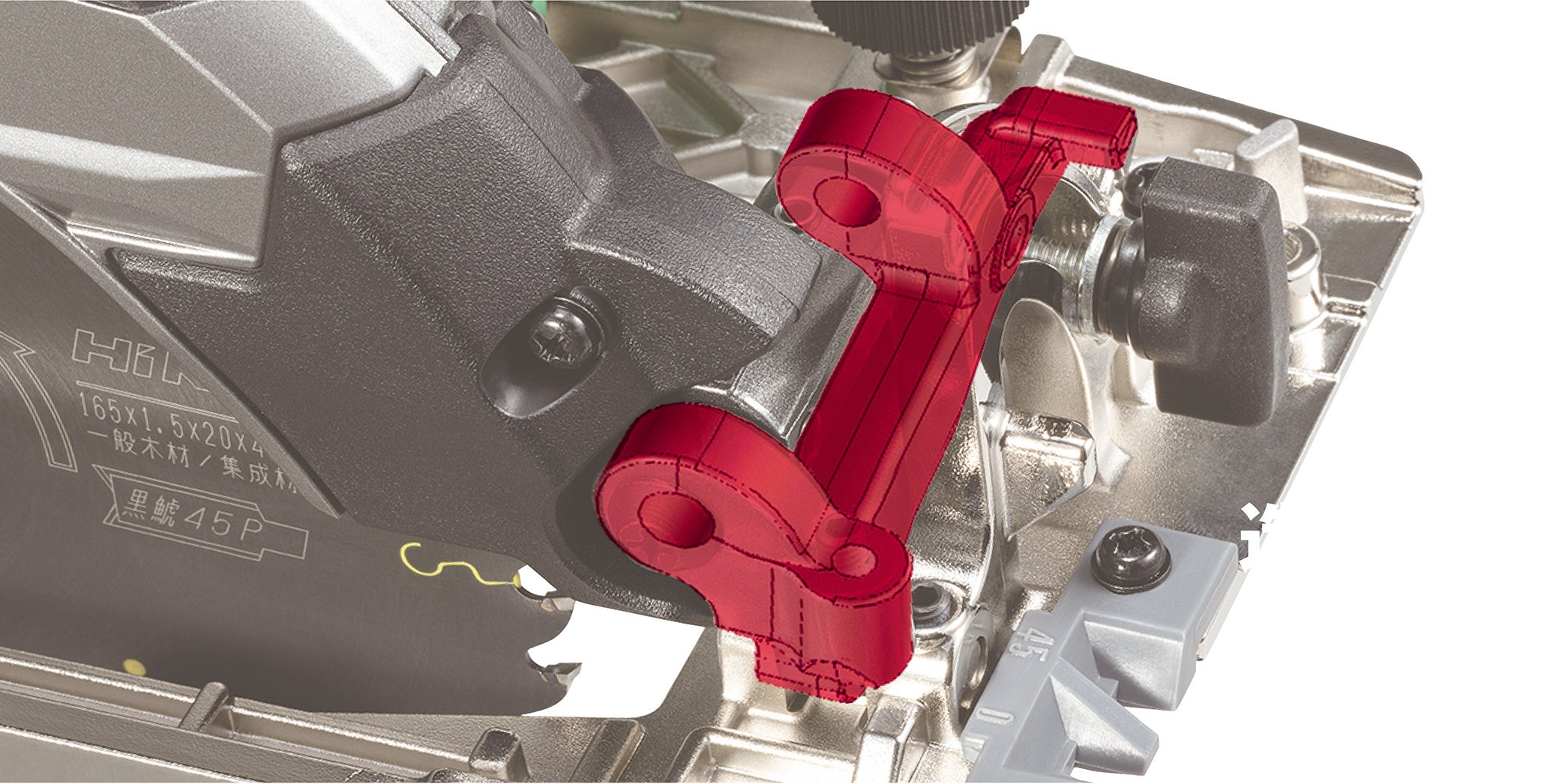 造作丸のこ同様の高剛性ダイカスト製ベベルピースを採用したことで、高精度な切断を実現しました。