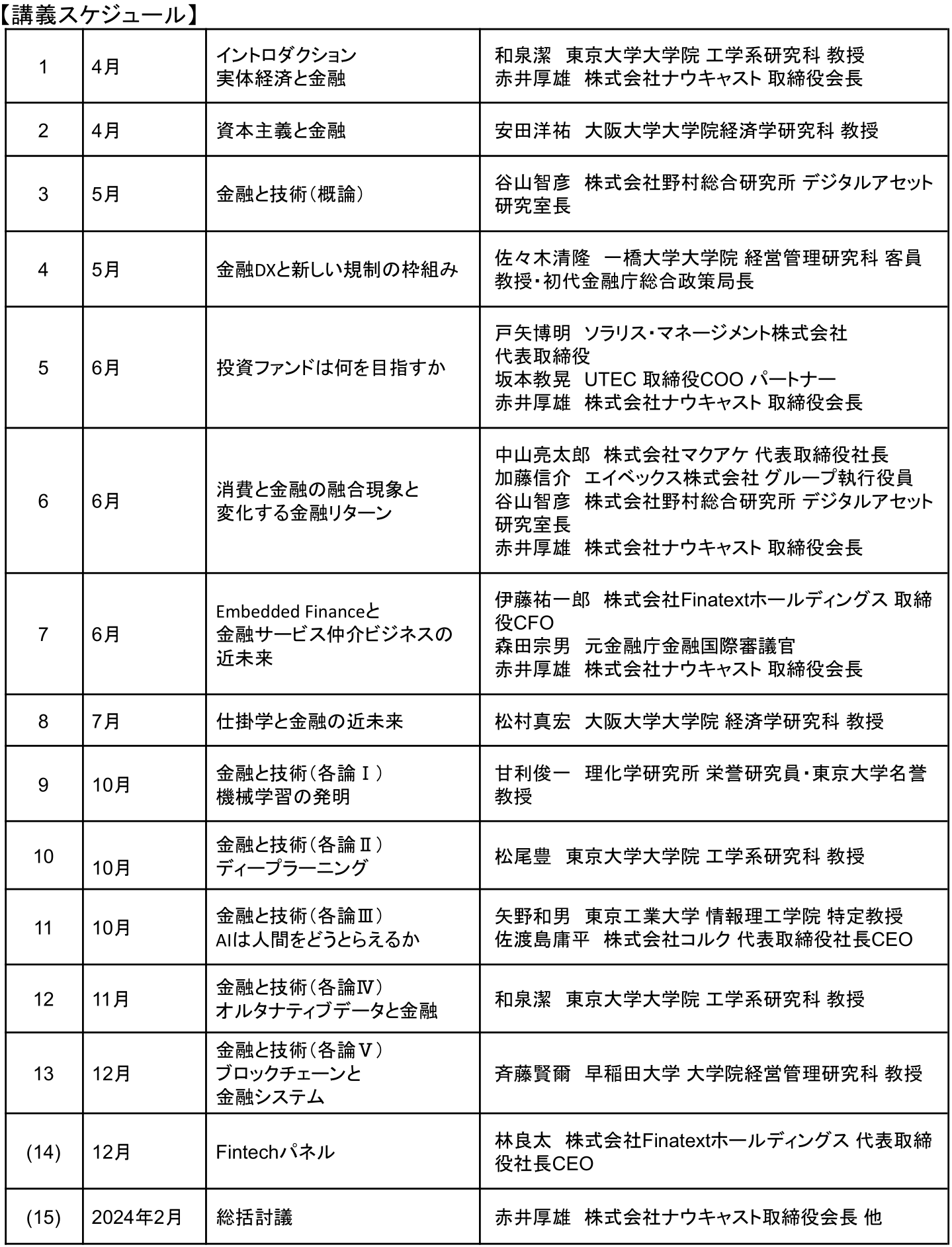 Finatextホールディングスは、2017年から近未来の金融システムを創る中核人材の育成を目的として「近未来金融システム創造プログラム」(プログラム統括責任者:赤井厚雄)を開講しています。