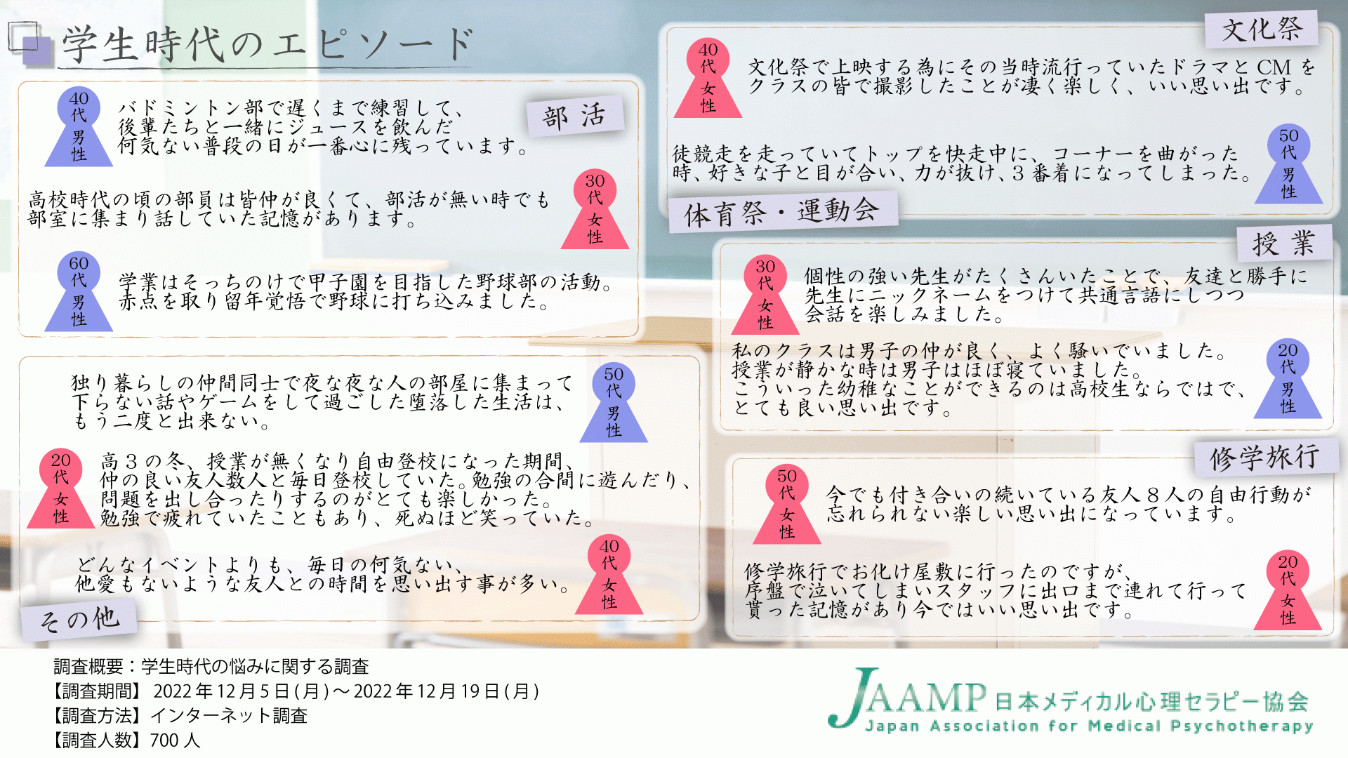 中には、「学生時代にはいい思い出がない」と回答した人もいました。