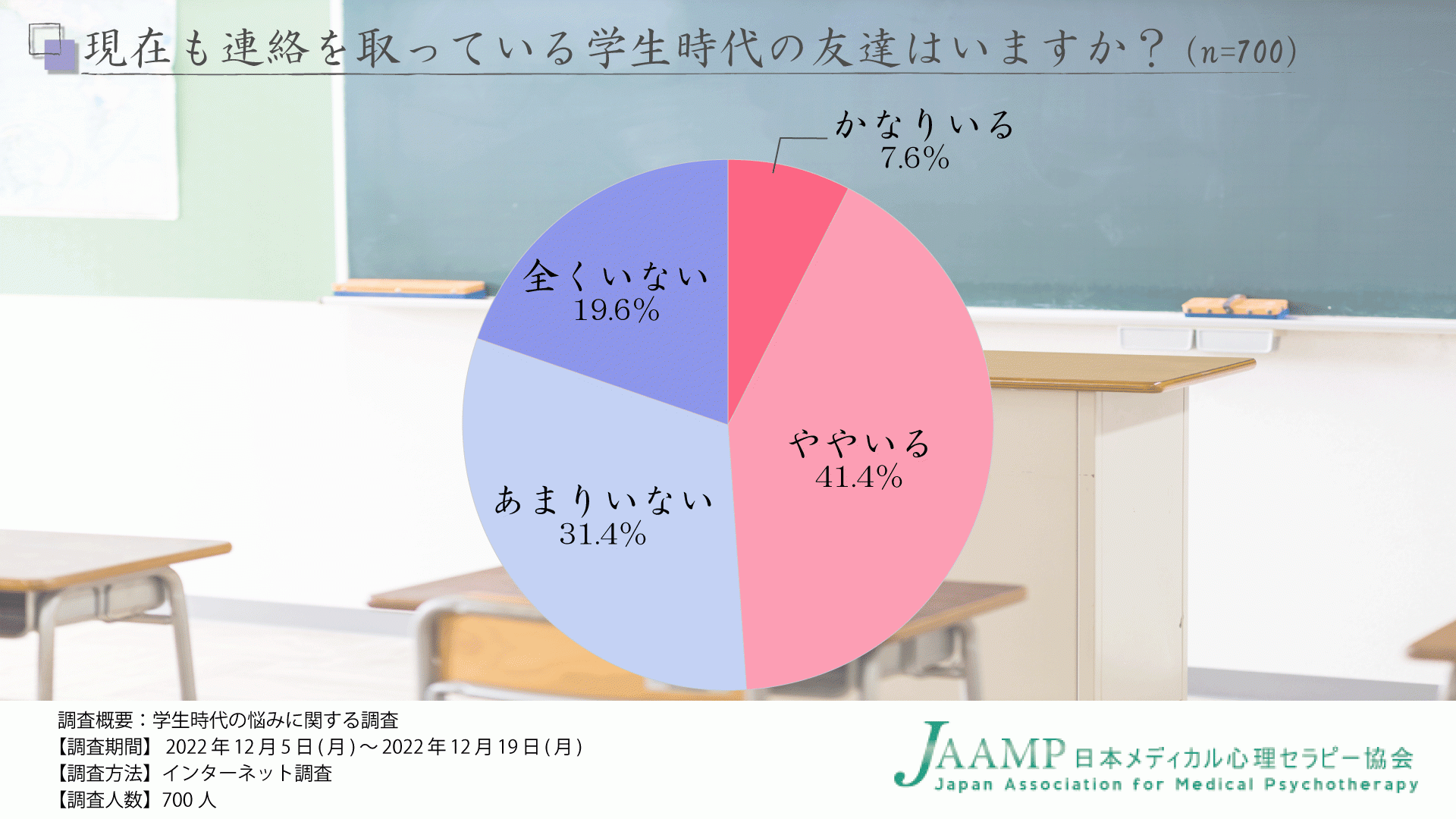 そこで、学生時代から現在まで連絡を取っている友人がいるという人はどのくらいいるのでしょうか。