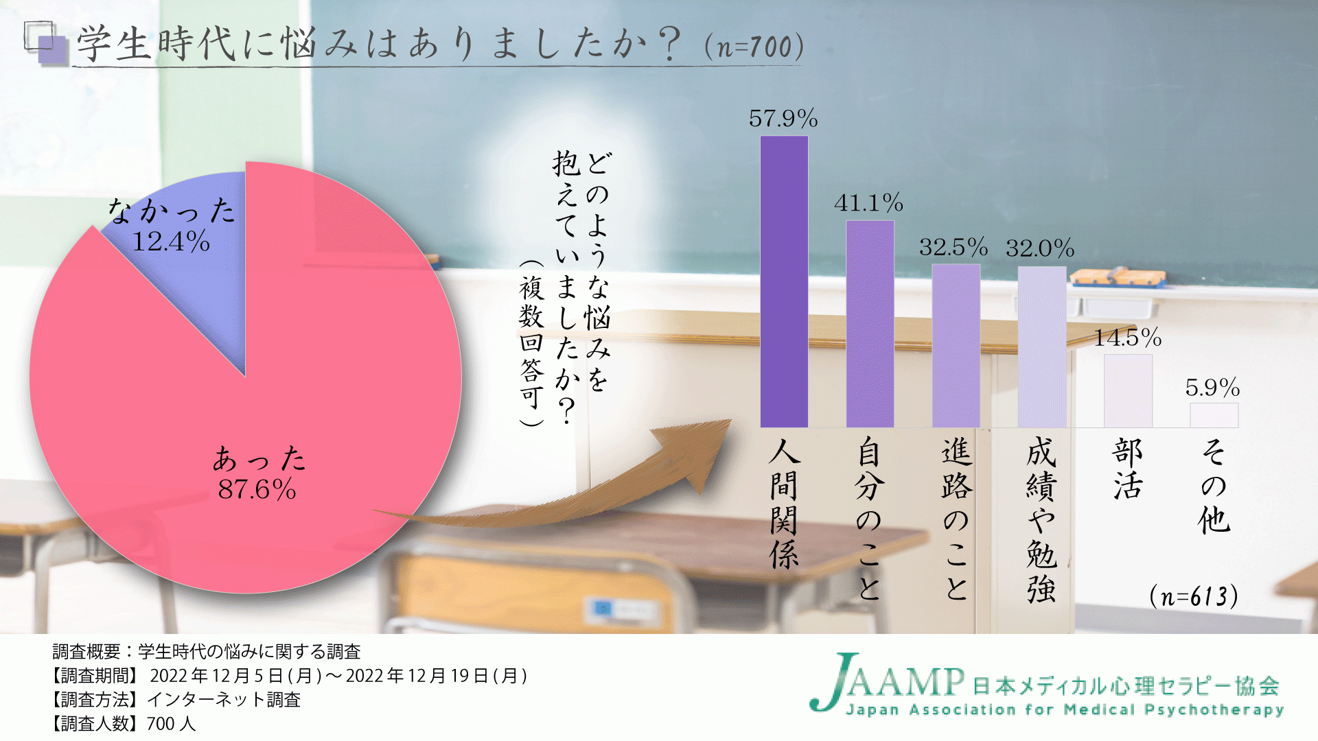 今回の調査では、約9割の人が学生時代に悩みを抱えていたと回答しました。